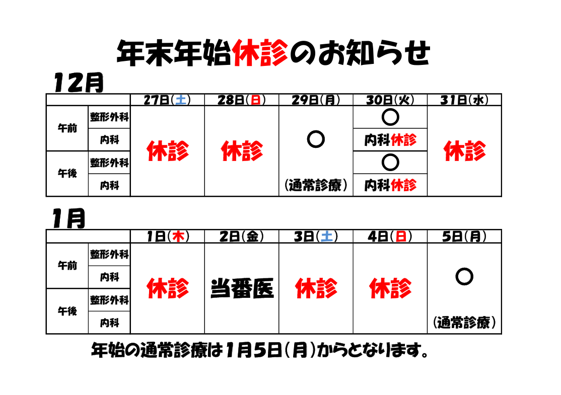 年末年始休診のお知らせ